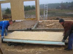 Ściany - to struktury warstwowe. Po pierwsze z desek montuje się szkielet. Na zewnątrz okłada się go płytami wiórowymi lub odpornym na wilgoć fornirem. Następnie od strony zewnętrznej mocuje się membranę, która izoluje parę, chroni konstrukcję od wiatru i wilgoci, oraz wypuszcza ze środka parę wodną, co sprawia, że drewno i materiały ocieplające schną w czasie eksploatacji. Drewno nie potrzebuje dodatkowej ochrony przed gniciem. Później zewnętrzną stronę domu tynkuje się, okłada płytami dekoracyjnymi lub wykańcza innymi nowoczesnymi materiałami. Od strony wewnętrznej do szkieletu mocuje się materiały ocieplające (wełnę mineralną, styropian, itp.), je hermetycznie przykrywa membraną izolującą parę. Kolejnym etapem jest montaż płyt gipsowo - kartonowych. Wszystkie instalacje chowa się wewnątrz ścian.