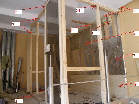 3.Stawia się pionowy i poziomy szkielet. (3.1. Szkielet łączy się kątownikami).