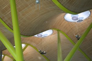 Ładnie będzie wyglądać drewniana kratka na tle zielonego albo zielono-niebieskiego sufitu.