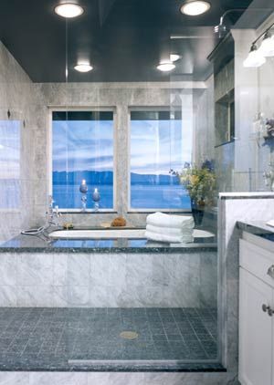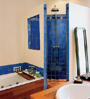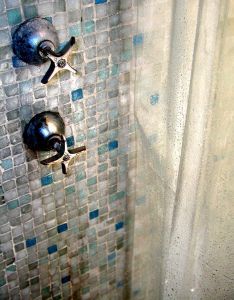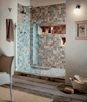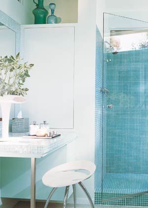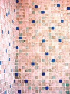 Ściany będą pięknie wyglądać pokryte nie tylko płytkami, lecz również marmurem albo mozaiką - jest bardziej elastyczna niż płytki, dlatego można nią pokrywać wygięte ściany.