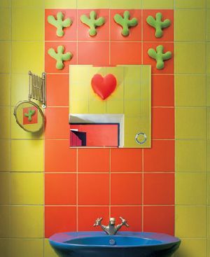 Gra soczystych kolorów - zielonego, pomarańczowego, niebieskiego - bardziej odpowiada dla miłośników adrenaliny. W takiej łazience pasować będą akcesoria z plastiku o wyrazistych neonowych kolorach.