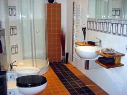 Wykończenie łazienki zależy z reguły od jej wielkości. Niewielką łazienkę można powiększyć wykorzystując część kuchni albo korytarzu, lub umieszczając w ścianie kilka niedużych luster. W małej łazience lepiej zrezygnować z wanny i zamontować kabinę prysznicową.
