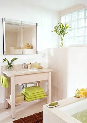 Niezwykły i niedrogi pomysł - to ściana z niegruntowanego betonu, pomalowana białą akrylową farbą. Z kolei szklane bloczki pomogą zamienić łazienkę na bardziej praktyczną, jaśniejszą i wizualnie większą. W takim przypadku odpowiednim elementem wykończenia będą szklane półki, różnokolorowe wazy i lampki o różnych formach.