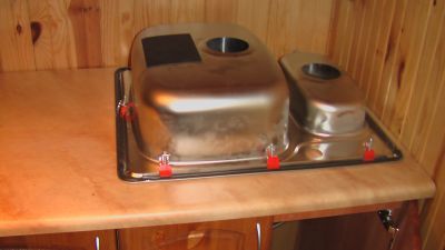 Najważniejszy etap - to mierzenie. Zlewozmywak był prawie o takich samych wymiarach, jak wnęka w szafce, dlatego wymierzyć i ciąć należało bardzo dokładnie, żeby została wystarczająca powierzchnia blatu, na którym będzie się montować zlew.