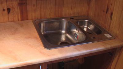 Kącik kuchenny urządziliśmy z oddzielnie kupionych szafek. Dobraliśmy do tego blat. W rogu postanowiliśmy umieścić zlewozmywak. Do przewidzianego miejsca już była doprowadzona woda i odpływ. Poza tym, jest to wygodne miejsce dla rury od bojlera.
