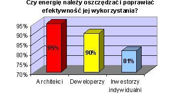 W Polsce sytuacja wygląda o wiele gorzej. Nawet profesjonaliści budowlani nie zawsze mają świadomość jak dużo energii pochłania ogrzewanie budynków - tylko co piąty architekt, developer udzielił poprawnej odpowiedzi na to pytanie. Natomiast pocieszający jest fakt, że zarówno inwestorzy (czyli osoby kupujące nieruchomość na własny użytek), jak i architekci oraz deweloperzy uważają, że w naszym kraju energooszczędne budownictwo jest to niezwykle istotna kwestia.