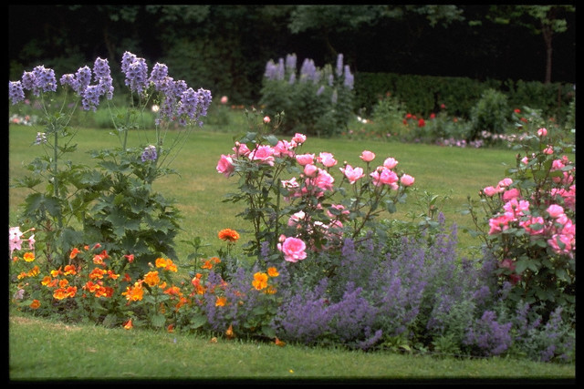 Większość sadzi róże na trawniku - nie w kwietniku, otoczone przez trawnik, a pojedynczy krzak czy ich grupę na tle trawy. Oczywiście, okwiecony krzak na tle szmaragdowej zieleni wygląda bardzo ładnie, jednak zapewne pojawiają się problemy związane z takim wariantem sadzenia.