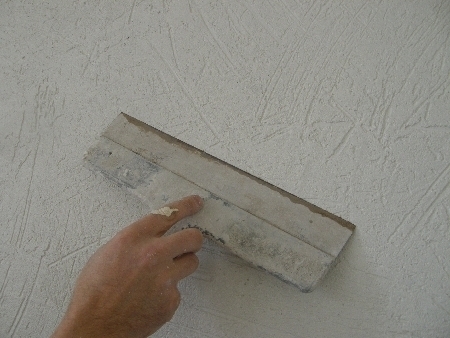 Po wyschnięciu tynku wykruszamy szpachlą nierówności.