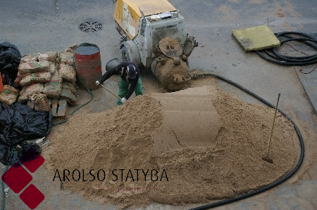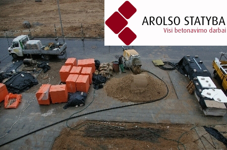 Prace przygotowawcze. Według Židrūnasa Stankevičiusa, zastępcy dyrektora UAB "Arolso statyba", przed wylaniem w obiekcie betonowej podłogi, należy określić stan podłoża. Jeśli najpierw wykonuje się podłogę, potrzebne są dane geodezyjne tego terytorium, na podstawie których można byłoby zaplanować prace. Chcąc uzyskać jakościową, praktyczną w każdej sytuacji i równą powierzchnię podłogi betonowej, trzeba szczegółowo przeanalizować rysunki i odpowiednio przygotować się do prac. Przede wszystkim - niwelować podłogę, odpowiednio przygotować podłoże i obliczyć grubość warstw betonu. Według grubości warstwy i przeznaczenia betonowanej podłogi ustala się potrzebną wytrzymałość betonu i potrzebną ilość dodatków.