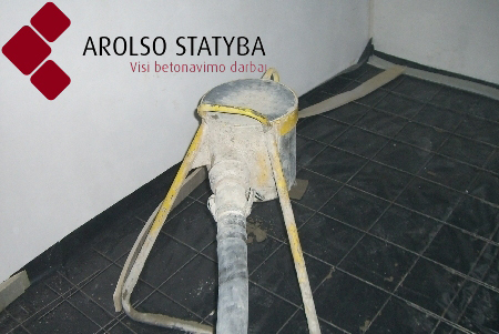 Beton na placu budowy i za pomocą specjalnych pomp, giętkich węży jest podawany bezpośrednio do miejsca pracy. Zdjęcie UAB "Arolso statyba".