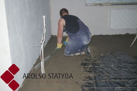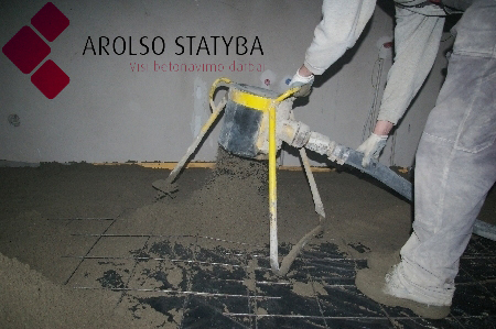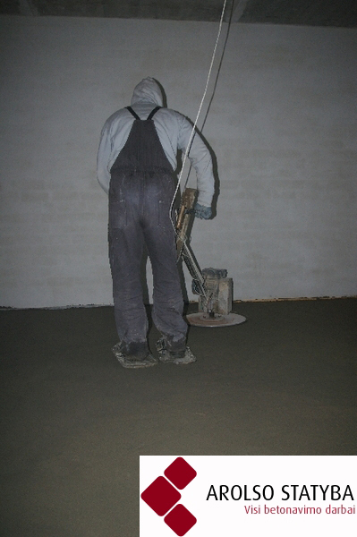 Wyrównuje się beton. Zdjęcie UAB "Arolso statyba".