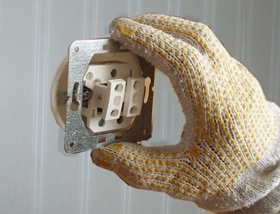 Panel mechanizmu włącznika włożony do podtynkowej puszki elektrycznej . Zdj. Autora