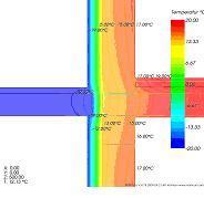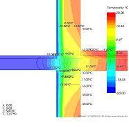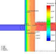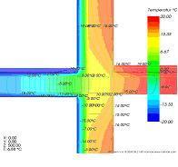 Widać tutaj wyeliminowany efekt ogrzanej płyty balkonu, która jest zimna. W stosunku do rozwiązania, gdzie płyta balkonu jest izolowana od dołu i góry - temperatura na powierzchni wewnętrznej wzrosła do ok. 15,8oC (*), a ryzyko wystąpienia kondensacji pary wodnej na powierzchni ściany zostało wyeliminowane i jest zdecydowanie mniejsze niż w przypadku balkonu izolowanego góra-dół. Wartość liniowego współczynnika przenikania ciepła Y zdecydowanie spadła do poziomu 0,15 W/(m*K) (*).