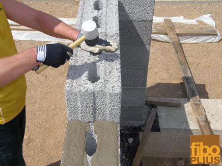 Bloczki konstrukcyjne są produkowane w dwóch rodzajach: równoboczne FIBO i z dwoma rowkami i wlotami FIBO plius. Wloty pozwalają uniknąć pionowego murowania, nie powstają mostki zimna, ściana jest równiejsza. Rowki na powierzchni poziomych bloczków FIBO plius ułatwiają prace murarskie, cieńszy jest poziomy nit betonowy. Otwory znajdujące się w bloczkach polepszają właściwości termoizolacyjne.