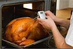 Termometr do mięsa mierzy temperaturę wewnątrz pieczeni, dzięki niemu każde danie drobiowe czy pieczeń będzie nie tylko ładnie upieczone na zewnątrz ale i dobrze w środku.