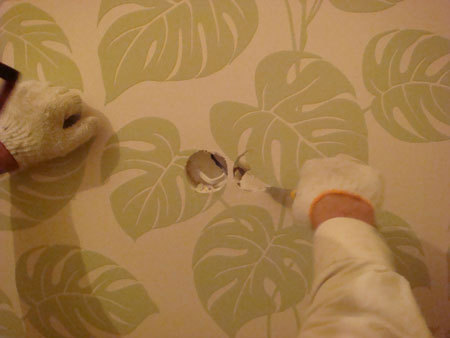 Gdy ściany już są oklejone tapetami przystąpić należy do wycinania otworów na gniazdka i włączniki.