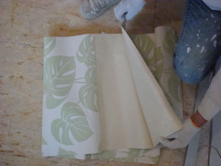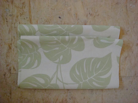 Złożony pasek tapety pozostawiony do nasiąknięcia.