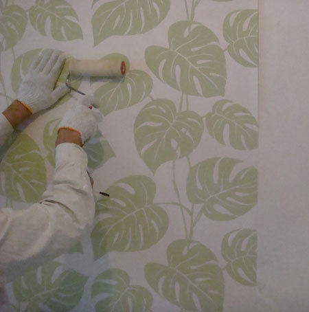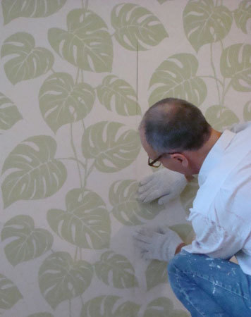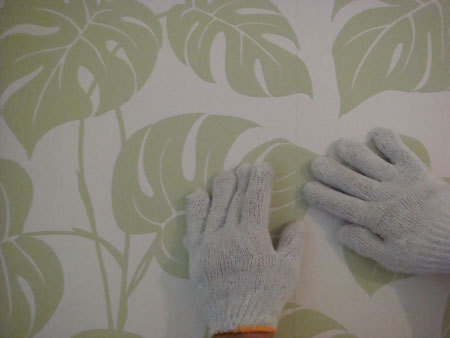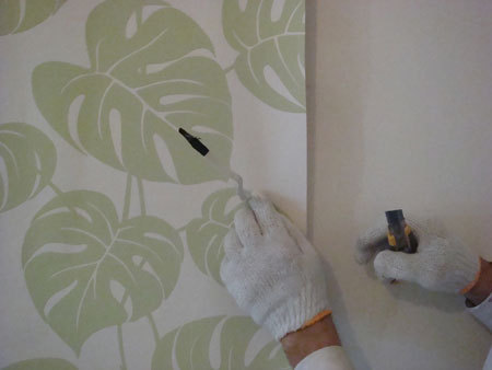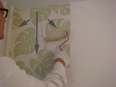 Wtedy dopiero mocno trzymająca się ściany tapetę dociskamy od góry do dołu wałkiem, a następnie od środka na boki w kierunku krawędzi tapety, w taki sposób klej zostanie rozprowadzony równomiernie.