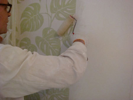 Przed klejeniem w danym miejscu posmarować należy też i ścianę, gdyż tak jest wskazane na opakowaniu tapet.