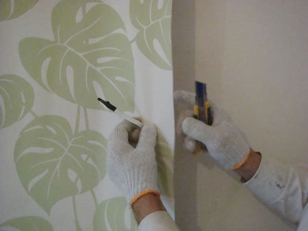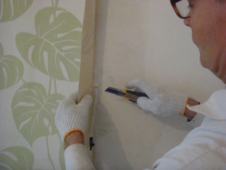 Przecięcie tapety nożykiem.
