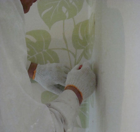 Dociskanie wałkiem krawędzi tapet.