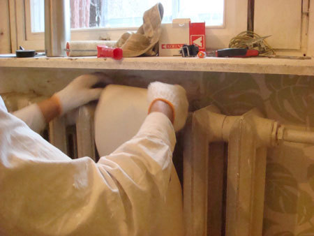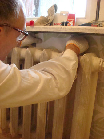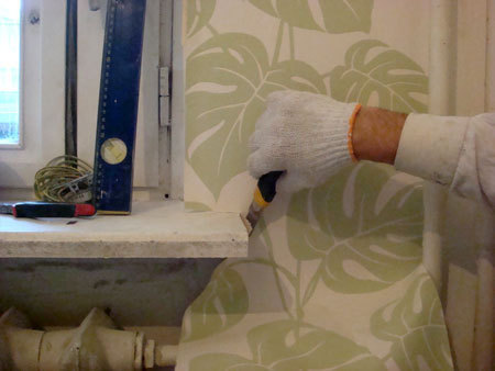 Wkładanie tapety za kaloryfer.