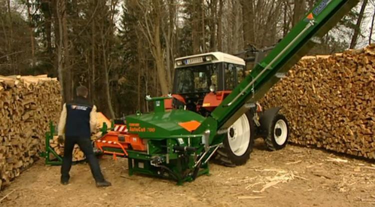 Piła w pełni automatyczna. Zawieszana na trójpunktowym podnośniku ciągnika. Do cięcia drewna okrągłego, rozłupanego i zrzyn drewna.