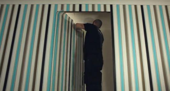 Film instruktarzowy przedstawiający dokładne tapetowanie drzwi.