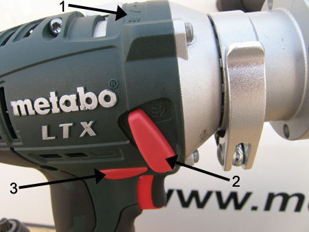 1 - ustawienia momentu obrotowego, 2 - włącznik regulujący prędkość obrotową, 3 - dźwignia zmiany kierunku obrotu