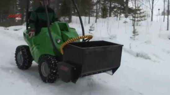 Hydrauliczny rozsiewacz piasku i soli przeznaczony jest doszybkiego i efektywnego posypywania. Zamontowany z przodu umożliwia ładowanie go z poziomu ziemi tak jak w przypadku łyżki standardowej. Napędzany hydraulicznie i wyposażony w mieszadło, które kruszy większe frakcje i zabezpiecza przed zatkaniem się otworu wylotowego. Płytki na mieszadle są sprężynowe aby zapobiec złamaniu się w przypadku natrafienia np. na kamień.