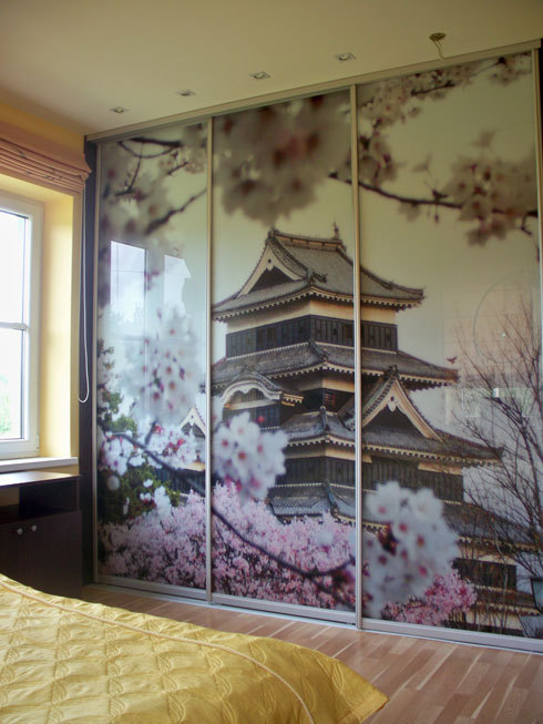 W przypadku braku akcentów na ścianie można udekorować szafę spokojnym pejzażem. Zdj. www.batuotasobuolys.lt