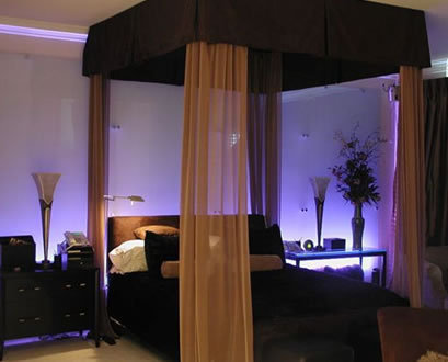 Po pierwsze, podstawowym akcentem sypialni jest łóżko. Łóżko już samą swoją obecnością powinno przysłaniać wszystkie inny elementy tego wnętrza. Jak to osiągnąć? Przy pomocy tekstyliów. Nakrycie, poduszki, a może nawet i baldachim...Wszystko to zależy od gustu i stylu. Nie ważne, w jakim stylu jest wykończone wnętrze sypialni, ale tkaniny zdobiące łóżko powinny tworzyć przytulną atmosferę i zachęcać do leżakowania. Ważnym akcentem jest zagłówek łóżka. Po pierwsze jest to bardzo wygodna rzecz, można oprzeć się czytając czy oglądając TV, a po drugie może on być pięknym i niepowtarzalnym elementem całego wystroju pomieszczenia, szczególnie przy wyborze nietypowego łóżka, albo robionego na zamówienie.