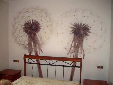 Wyróżniona ściana za zagłówkiem. Akcentem jest fototapeta. Zdj. www.batuotasobuolys.lt