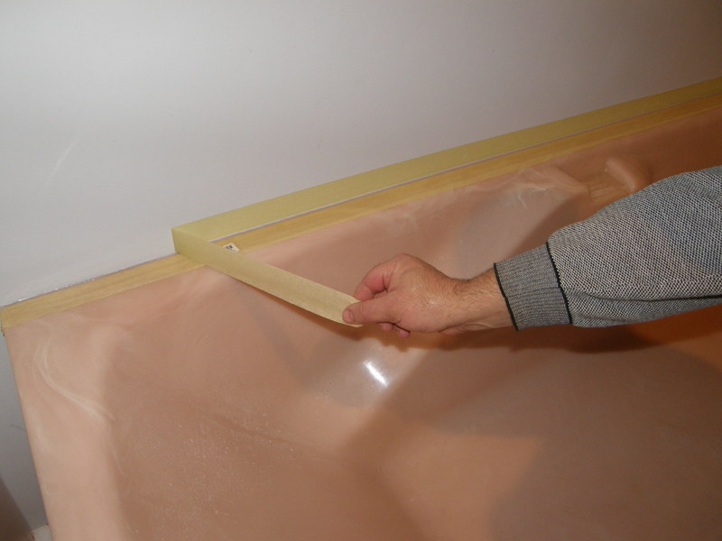 Spoiny kształtuje się przy pomocy szpachelki zamaczanej w wodzie. Wyrównać spoiny można i przy pomocy palca zwilżonego w mydlanej wodzie. Po czym należy odkleić przyklejone taśmy. Ręce i narzędzia należy umyć ciepłą wodą z mydłem.