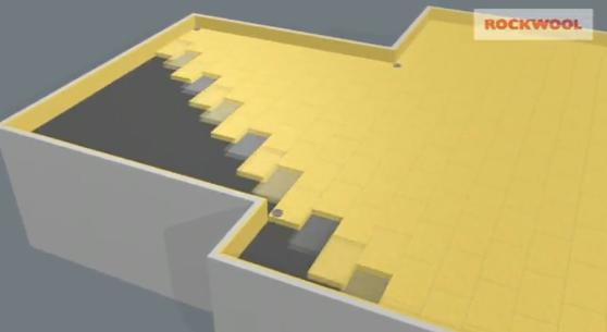 Zobacz jak wykonać odprowadzenie wód opadowych z dachu płaskiego za pomocą kształtowania spadków z izolacji ze skalnej wełny.