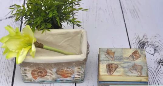 Tutorial prezentujący jak w technice decoupage krok po kroku ozdobić pidełko do łazienki za pomocą metody serwetkowej oraz spękań dwuskładnikowych.