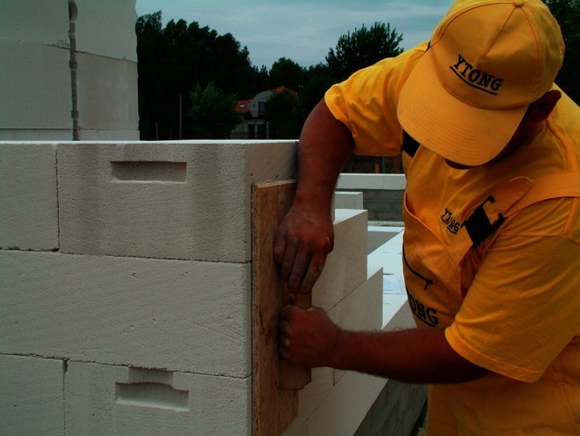 - poprawne i staranne zbudowanie pierwszej warstwy ściany nadziemia - wykonuje się ją na zaprawę tradycyjną, by łatwiej można było ją wypoziomować i równo położyć. Murowanie zaczyna się od narożników. Bloczek należy ułożyć piórami na zewnątrz - ułatwi to późniejsze prace tynkarskie. Gdy zwiąże zaprawa cementowa (po około 2 godzinach) można przystąpić do wykonywania kolejnej (i następnych) warstwy, którą muruje się już na cienką spoinę klejową.