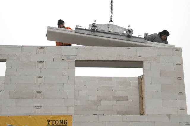- prawidłowe wykonanie otworów okiennych i drzwiowych - by uniknąć popękań pod otworami okiennymi stosuje się pod nimi zbrojenia wsporne. Glify powinny mieć jak najbardziej równą i gładką powierzchnię, a nadproża opierać się na ścianie na 20-25 cm. Warto zastosować elementy systemowe Ytong, tak aby cała ściana była z jednorodnego materiału;