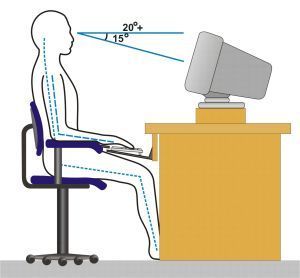 Odpowiednio usiąść w krześle i wówczas jego pozycję dostosować do własnych potrzeb. Większość ludzi pracuje siedząc na krawędzi krzesła, będąc zgarbionymi i pochylonymi do samego monitora. Najlepiej jest usiąść i oprzeć się o oparcie krzesła, a wówczas go odchylić na tyle, by głowa i szyja były w pozycji prostej.
