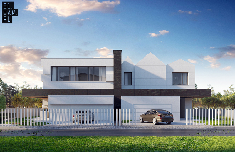Głównym założeniem projektu było połączenie różnych charakterów inwestorów. Poszczególne połówki, mimo iż tak różne, miały jednak stanowić spójną całość. Widoczny, ciemny plus na białej elewacji jest elementem, który łączy sąsiadów, ale jednocześnie pozwala na nadanie bryle indywidualnego charakteru.