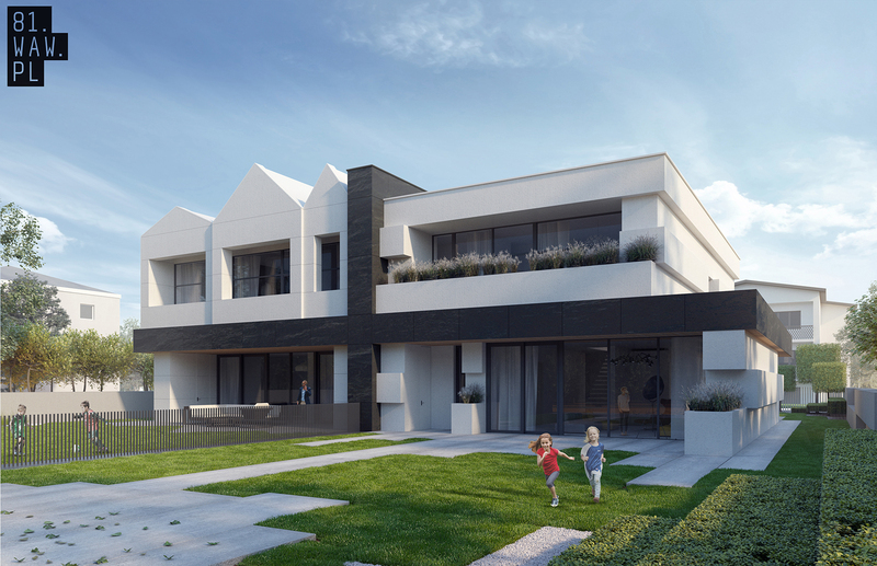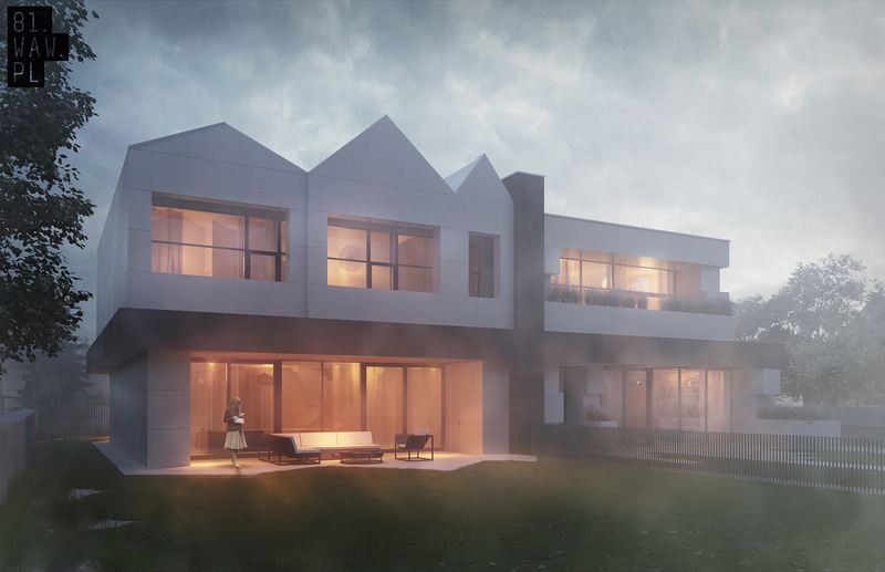 Dom+ to kolejny projekt warszawskiej pracowni 81.waw.pl. W swojej nietypowej bryle chowa funkcje domu bliźniaka. Charakterystyczna forma plusa na elewacji wynika z 4 głównych właściwości użytkowych budynku i dzieli białą bryłę na tyle samo różnych części.
