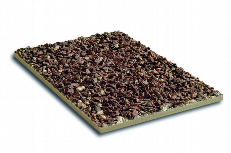 Płyty GRANITEX są następnie wykańczane naturalnym granulatem kamiennym w epoksydowym spoiwie barwionym na stronie wierzchniej. Strona spodnia pokryta jest powloką odporna na wilgoć.