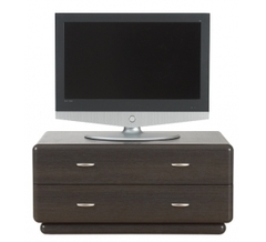 Szafka RTV firmy Black Red White, z zaokrągleniami masywnych frontów i cokołów.