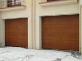 Bramy garażowe Wood- to bramy wykonane z paneli o strukturze drewnopodobnej, możliwe są kombinacje przetłoczeń. Do wyboru są trzy kolory dekorów: złoty dąb, orzech i machoń.