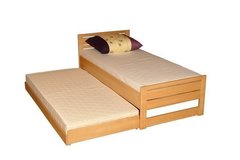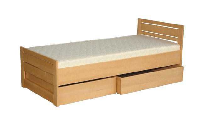Łóżko Andrea z szufladami na pościel, wszystko wykonane jest z litego drewna bukowego.