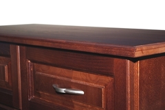 Komoda o konstrukcji wieńcowej, ramowo płycinowej. Wykonana z litego drewna bukowego, powierzchnia wykończona ekologicznymi bejcami i lakierami.
