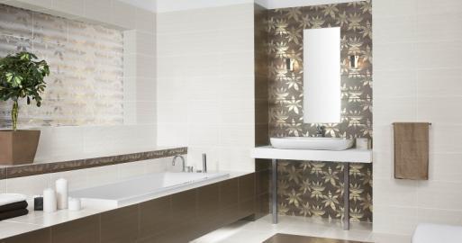 Kolekcja „ciepła" to satynowe, bezowe i czekoladowo-brązowe płytki bazowe, eleganckie inserta ze złotymi metalizacjami i delikatne szklane listwy w kolorze starego złota i metalicznego brązu - wenge . Nowoczesność ubrana w klasyczne, ciepłe kolory. Całą kolekcję uzupełniają trzy nowoczesne płytki podłogowe (PURIO) w rozmiarze 40x40. Jednokolorowa, satynowa płytka o antypoślizgowej powierzchni z wyczuwalnymi wypukłymi kwadracikami, nawiązuje do podłóg o nowoczesnym industrialnym charakterze.