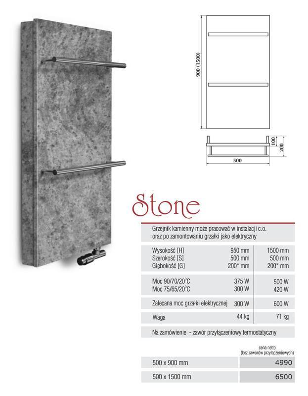 Kamiennych łazienkowych grzejników, stosuje się do instalacji w systemie C.O. lub po zastosowaniu grzałki - służą jako grzejniki elektryczne.