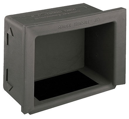 Tłumik akustyczny Schöck Tronsole® typ ZF: Wydrążona forma ze zintegrowanym pierścieniem przyłączeniowym specjalnie do zastosowania przy podestach schodów wykonanych jako prefabrykaty. Dostępne jako typ ZF plus lub ZF-S do przenoszenia sił ujemnych lub poprzecznych. Spełnia warunki klasy przeciwpożarowej F 90 przy odpowiednim pokryciu betonowym obiektu.