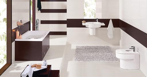 Travena / Trovan - Ekskluzywne płytki rektyfikowane TRAVENA w kształcie długiego prostokąta o wymiarach 32,5x65,1 cm, z rektyfikowanymi płytkami podłogowymi TROVAN formatu 32,5x32,5. Płytki TRAVENA mają szlachetne, błyszczące szkliwo. Nowatorsko potraktowane są dekoracje MOGANO imitujące egzotyczne drewno, w ciemnym, bardzo kontrastowym w stosunku do płytek TRAVENA kolorze. Płytki ścienne i podłogowe przeznaczone są do układania "bezfugowego" (fuga minimalnej szerokości, ok. 1,3 mm). Nowością w zestawie jest czteroelementowy panel dekoracyjny z kwiatowym motywem.
